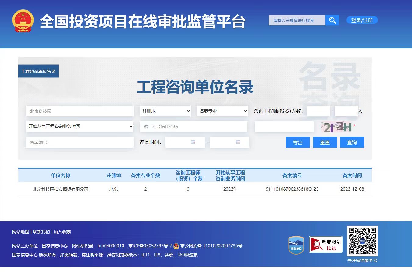 全國投資項目工程咨詢單位名錄