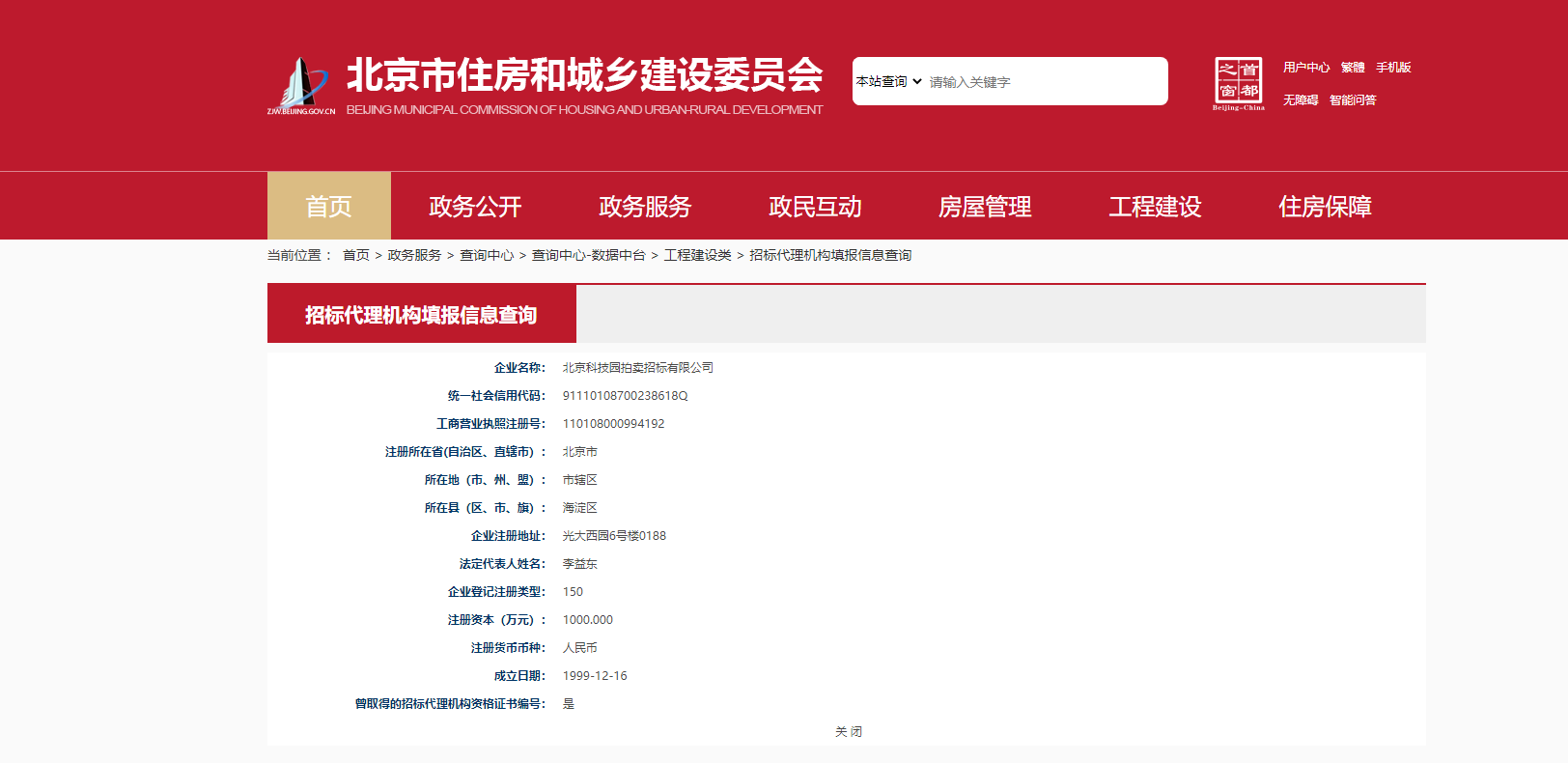 北京市住房和城鄉(xiāng)建設(shè)委員會招標(biāo)代理機構(gòu)填報信息