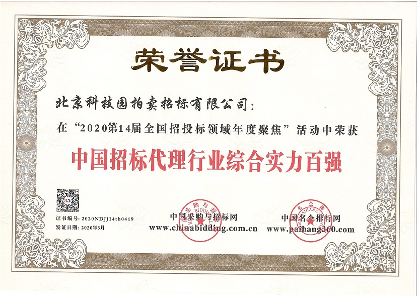 2020第14屆全國(guó)招投標(biāo)領(lǐng)域年度聚焦“中國(guó)招標(biāo)代理行業(yè)綜合實(shí)力百?gòu)?qiáng)”
