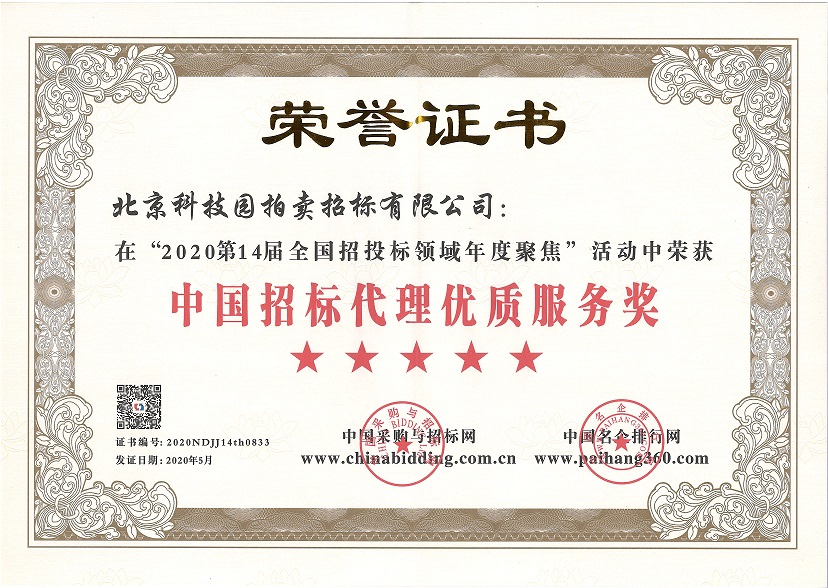2020第14屆全國(guó)招投標(biāo)領(lǐng)域年度聚焦“中國(guó)招標(biāo)代理優(yōu)質(zhì)服務(wù)獎(jiǎng)”