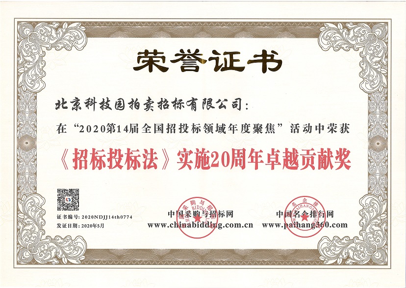 2020第14屆全國(guó)招投標(biāo)領(lǐng)域年度聚焦“《招標(biāo)投標(biāo)法》實(shí)施20周年卓越貢獻(xiàn)獎(jiǎng)”(2020.5)
