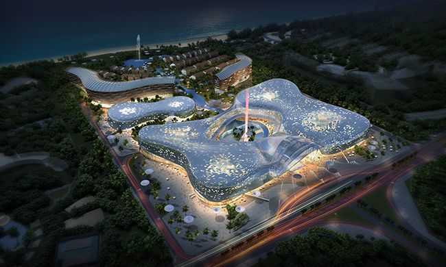 項目概況 總建筑面積約22.1萬平方米(商業(yè)、酒店、產權式酒店),其中一期商業(yè)建筑7萬平米(免稅城)